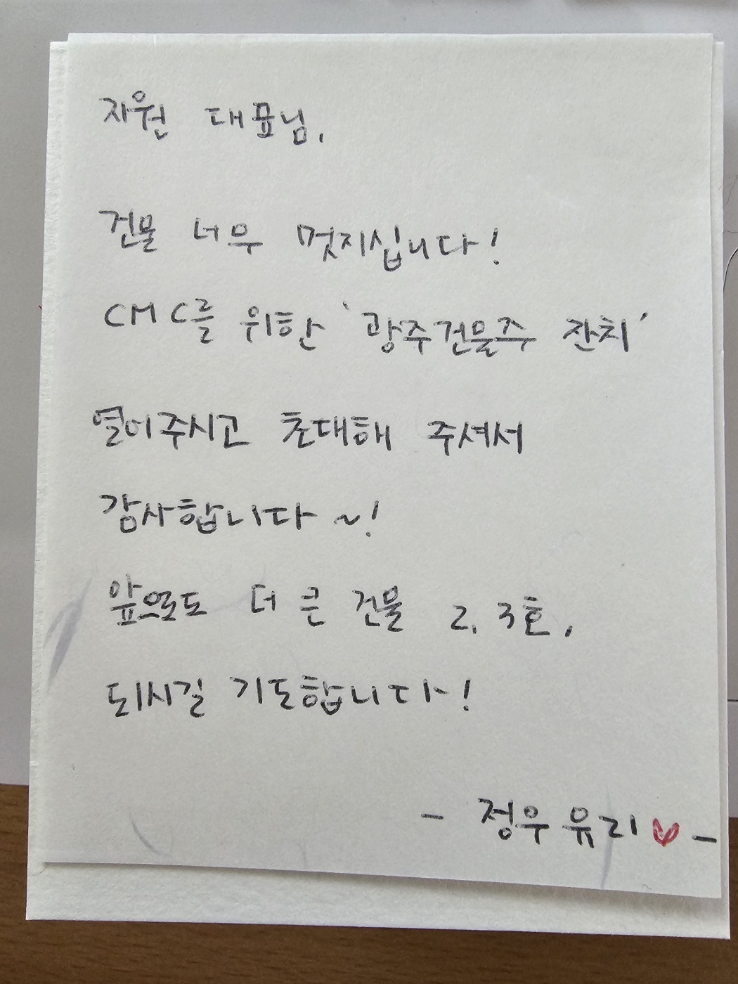 이 자리를 빌어 다시한번 감사의 말씀을 드립니다.