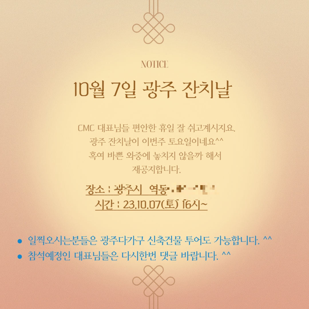 CMC대표님들만 초대하게 되었다. 4분 건물주님들에게는 미안한 마음이다.^^