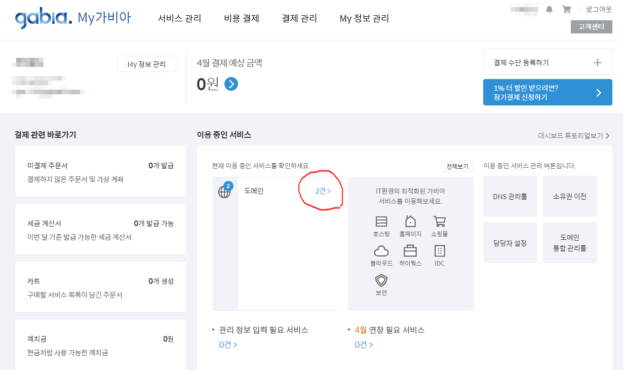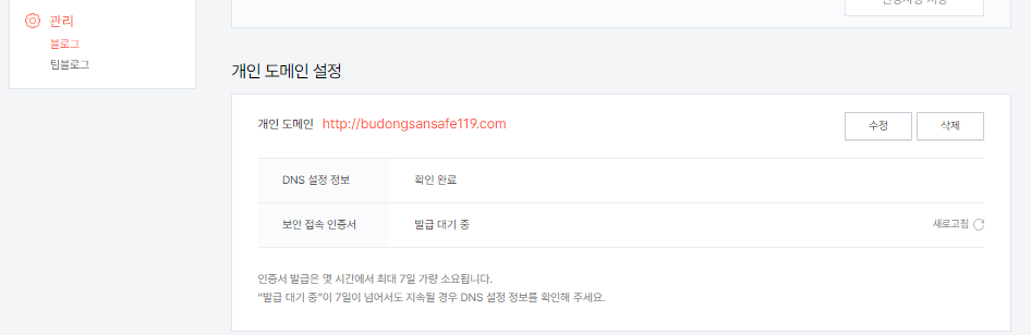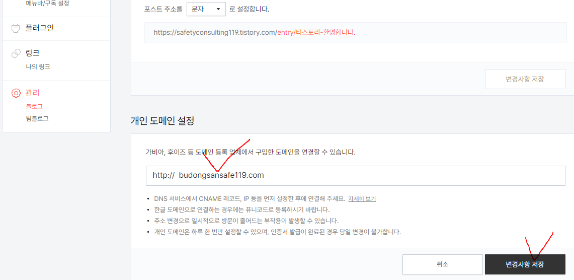 티스토리 개인 도메인 연결방법 - 가비아 도메인