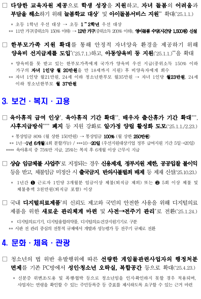 □ 한부모가족 지원 확대를 통해 안정적 자녀양육 환경을 제공하기위해양육비 선지급제를 도입*(’25.7.1.)하고, 아동양육비 등 지원(’25.1.1.)**을확대